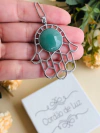 COLAR MÃO DE HAMSÁ COM PEDRA NATURAL QUARTZO VERDE