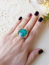 ANEL MÉDIO COM APLICAÇÕES DE CANETA DE RÓDIO NEGRO PEDRA NATURAL ESMERALDA FACETADA