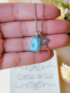 COLAR COM PINGENTE DUPLO REMOVÍVEL FÉ E PEDRA NATURAL - Cordão de Luz Joias Finas