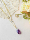 COLAR DUPLO PONTO DE LUZ E A PEDRA AMETISTA EM FORMATO GOTA