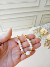PULSEIRA PEQUENA PÉROLAS DE ÁGUA DOCE COM HANSÁ E OLHO GREGO