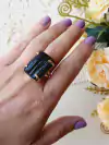 - > ANEL AJUSTAVEL RETANGULAR PEDRA NATURAL TURMALINA NEGRA