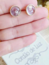 1 par de brincos em banho ouro 18K com a pedra ametista medindo: 1cm de diâmetro.