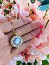 1 pingente banhado a ouro 18K com uma pedra natural (redonda de 20mm) a sua escolha;