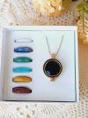 - > COLAR RELICÁRIO CÁPSULA ESMALTADO COM 7 PEDRAS NATURAIS