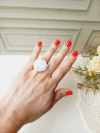 ANEL AJUSTÁVEL REDONDO GARRA PEDRA NATURAL QUARTZO BRANCO FACETADO