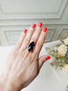 ANEL AJUSTÁVEL NAVETE GARRA PEDRA NATURAL ONIX FACETADA